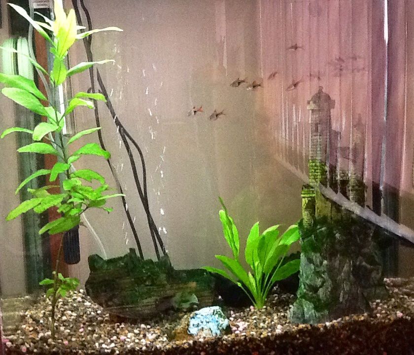 I was thinking of a mixed stock of male Endlers, Harlequin Rasboras and Celestial Pearl Danios (about a dozen each).