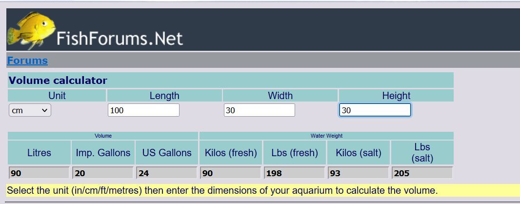90 litres? Wouldn't it be more like 200?This is what I do to find out the size of my tank.