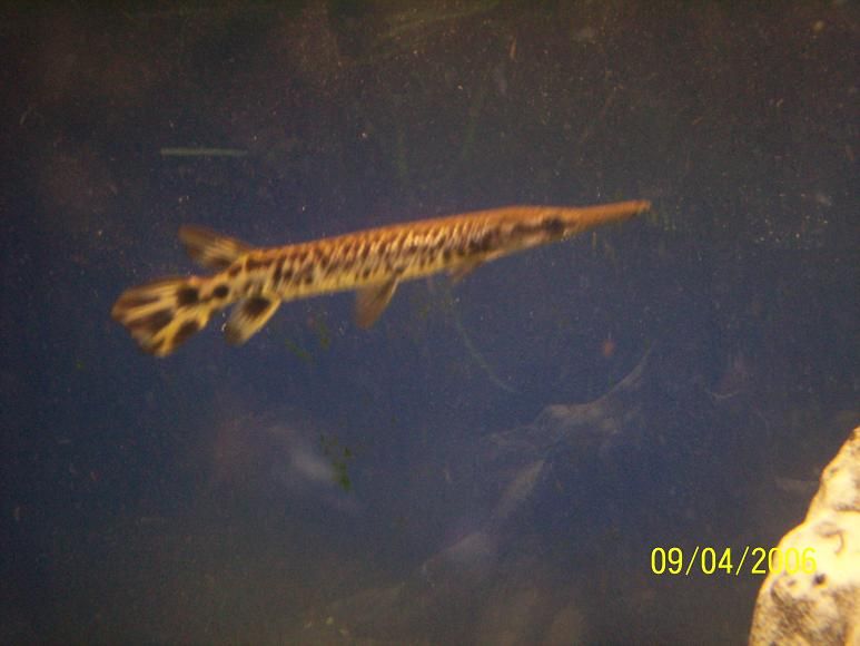 To me, the whole pattern, snout, etc. don't look much like a normal spotted or florida gar, just my opinion. How big is it? At younger ages and sizes, many gar species look alike. I really think it's somehow an alligator gar though. Hope my guess wasn't too far off.