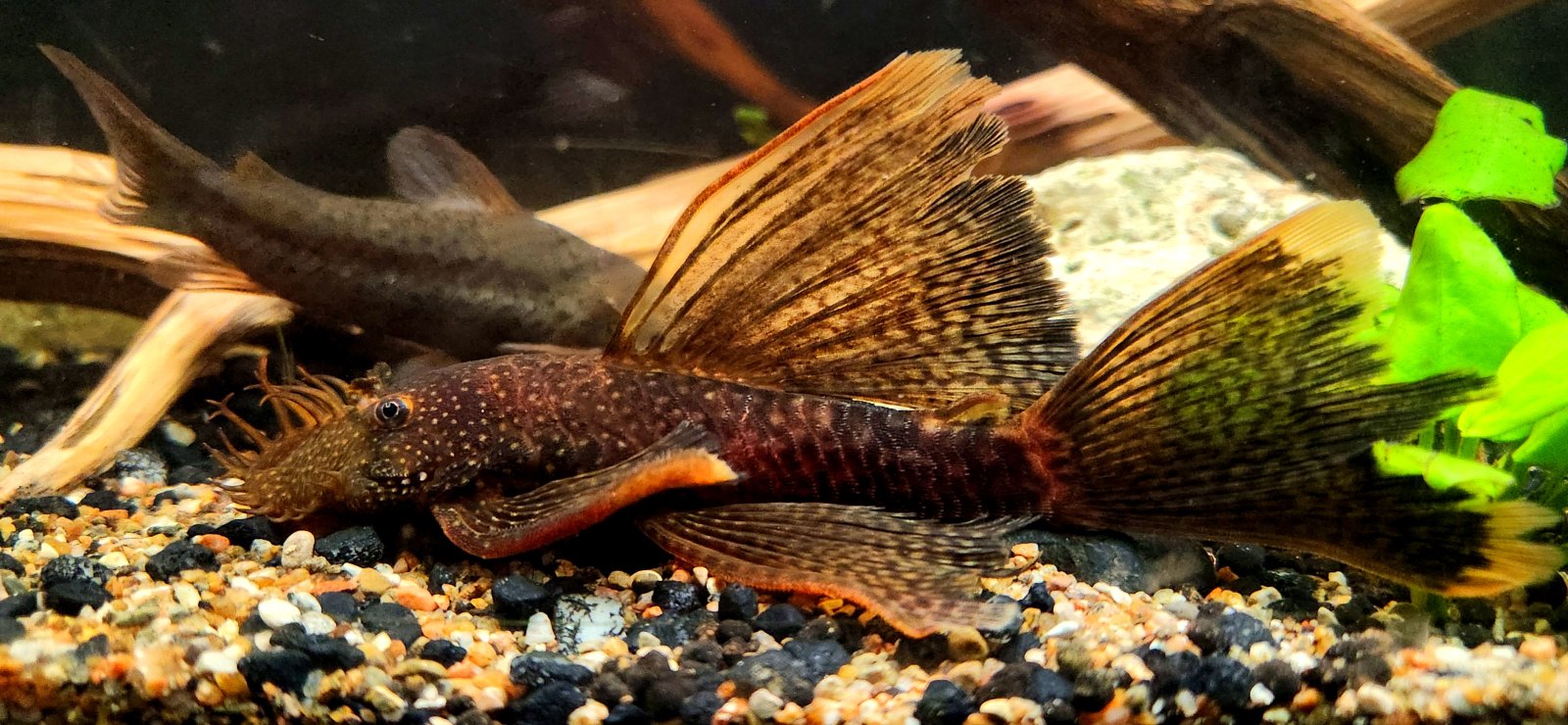 This guy is a longfin super red calico. He is the son of the female super red I had in the past (her photo is in the female pleco photos I posted previously)