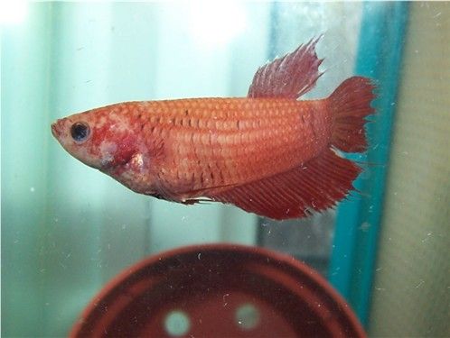 - though she should also be much brighter in a few hours - in her “normal state” her body is very light cream and her fins are bright red