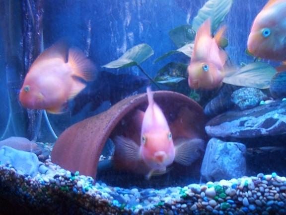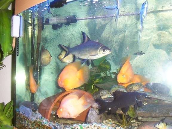 We have purchased a new 450ltr bow front tank for our 7 large Parrot fish, 3 large Pleco's, 4 Rams, 2 large Angels, 2 large Silver Dollars, 1 giant Silver Shark, 1 Black Shark, 1 upside down catfish and 3 large Clown Loaches, so we want a tank setup that is hardy but still visually appealing!