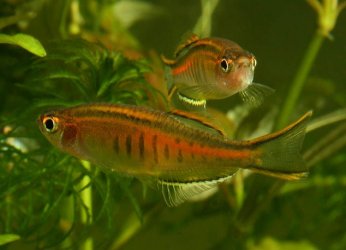They squabble constantly and chase each other without causing any damage. A shoal of at least six is preferable. They are easy to take care of, are hardy and adaptable like other danio species. This is a natural species not to be confused with the genetically modified glowfish. They are jumpers; I wouldn’t keep them in an open top tank. A temperature of 23C-27C (73F-81) and a ph of 6.5-7 are ideal though they do fine in harder water and higher ph. An excellent hardy beginner fish.