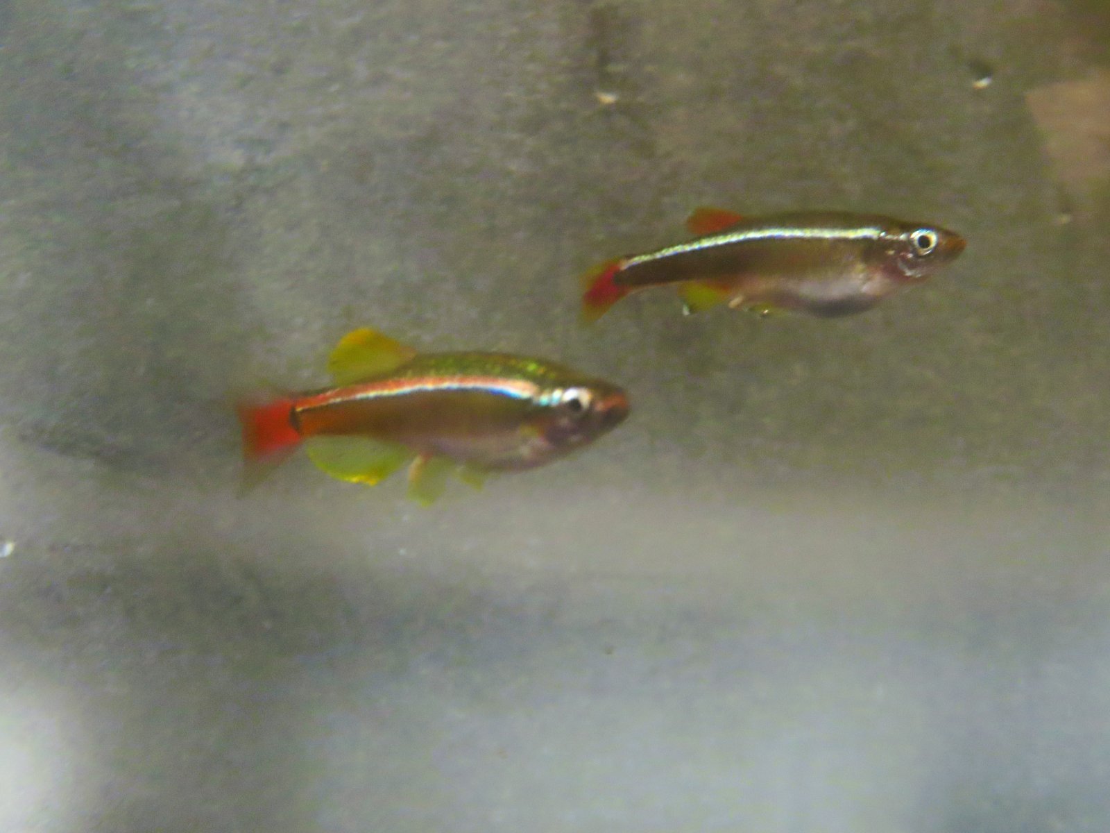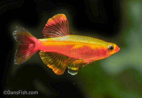 " Golden White Cloud (Tanichthys albonubes) is a color variant of the White Cloud Mountain Minnow which originates from the “White Cloud Mountain” (Mount Baiyun) in Kwangtung, China. The Golden White Cloud is also commonly referred to by tropical fish keeping enthusiasts as the Meteor Minnow, Chinese Danio, and “poor mans Neon Tetra“.