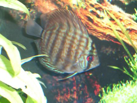 Thanks for the advice ken, but that pic was taken right after i put him in the tank and the pic didn't came out too good, however the rednes on his eyes came back today and he's settling in quite good, my other discus also stop harrassing him(I guess the pecking order has already establish)....he seems really active and would came up on the surface for food during feeding time....I'm still nervous about him cause i don't have a quarantine tank and i'm taking the risk of infecting my other discus if this one carried a disease on him.....I took better pics today and will be posting it again soon....