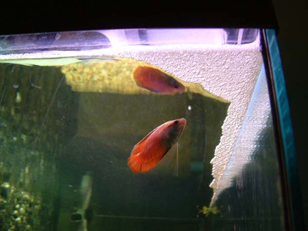 Our male dwarf gourami has just started making a bubble nest, maybe he thinks he's going to get lucky with our Powder Blue