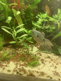 I have 3x 3 spot gourami and 3x gold gourami so a different colour variation on the three spot. Their colours have recently changed from lighter to darker and their behaviour has turned more aggressive/lots of chasing each other. I think this might be spawning but given that it’s a nightmare to sex them I have no idea if I have males or females. The photos show the colours as you can see (hopefully), one of the gold is much darker with tiger stripes and same with one of the blue three spot. My water parameters and temperature are all fine so is this just spawning or something else?