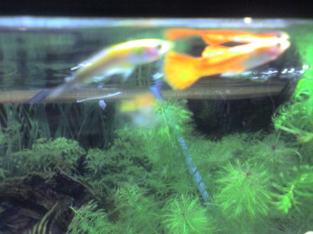 Now, i'm not sure what I should do. I have an angel in the tank which was bullied downstairs, and I personally don't think these 2 guppies are doing the tank any good - they are still swimming around with the other guppie and not 'seeming' too bad, even though the one looks like he's been dead for days!
