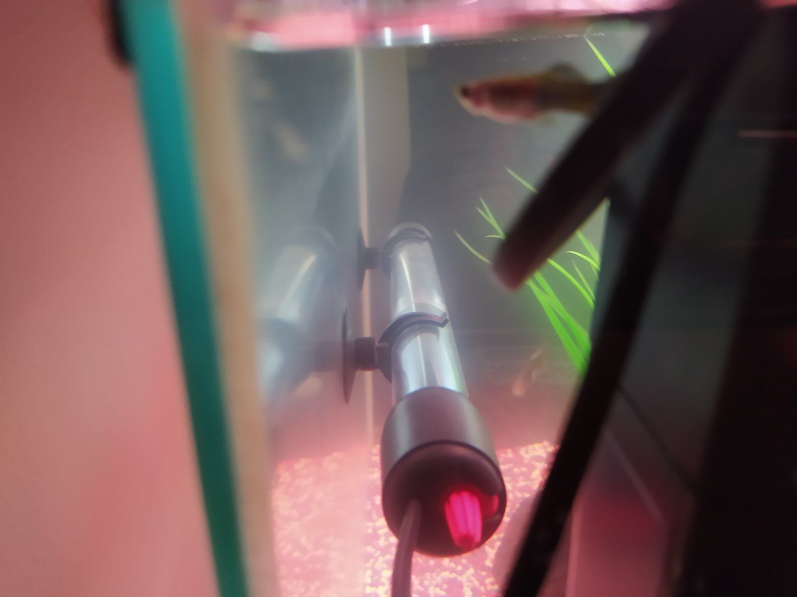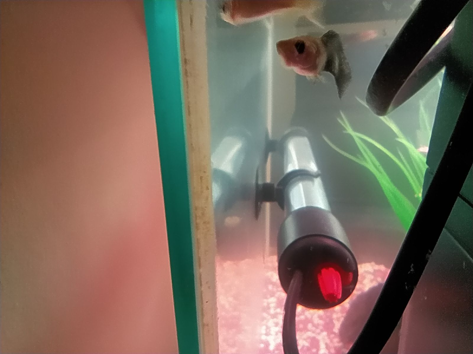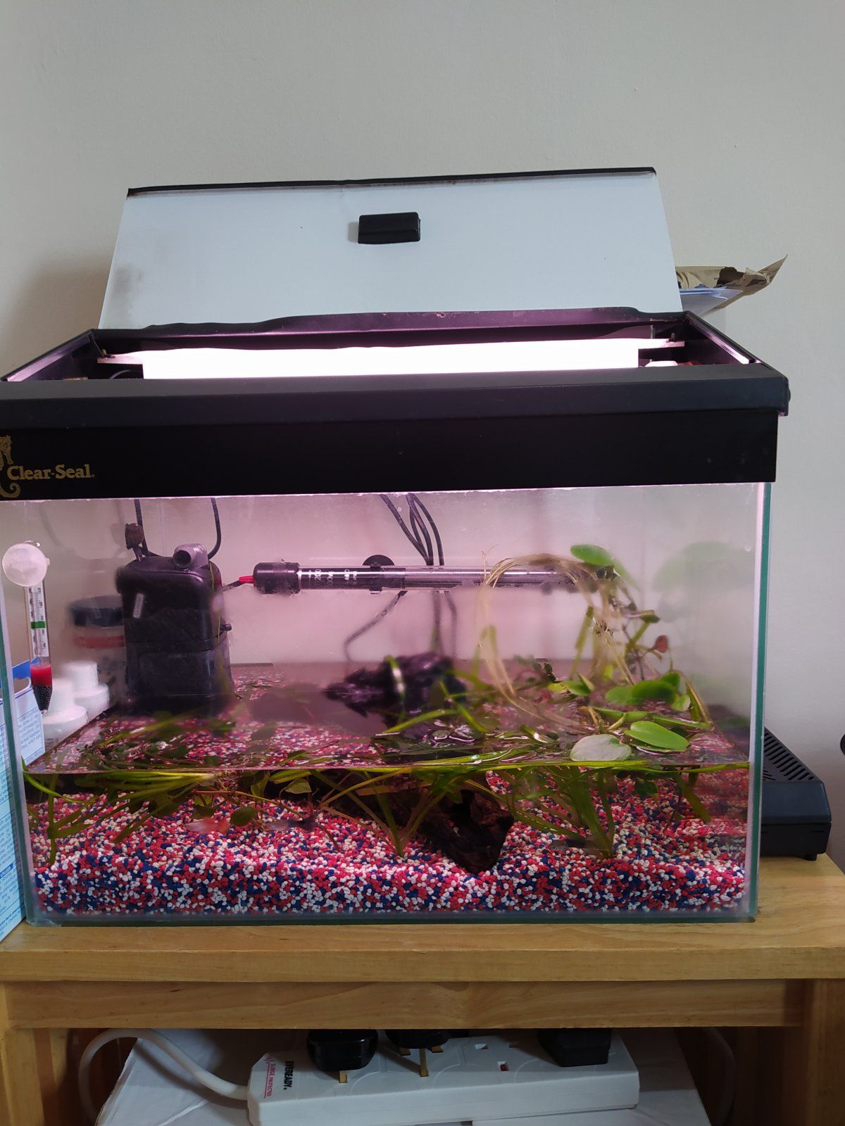 "The tank had been running for 4 days before fish were added."Here is the obey staying in corner. I'm struggling to get any photos better than that, it's in a hard ace to reach.