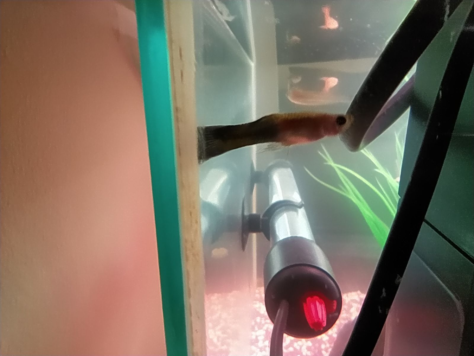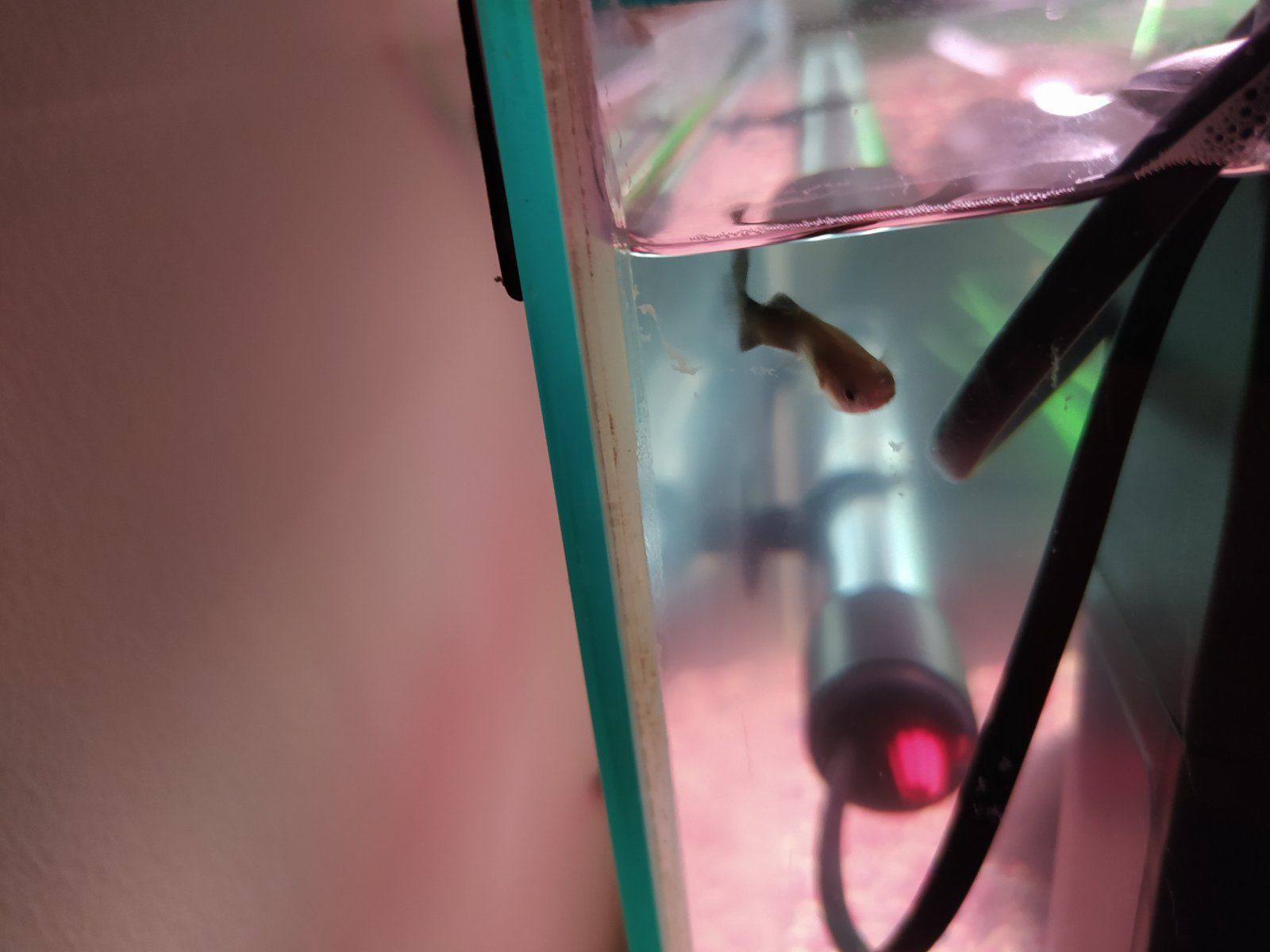 So, my first question is about this Guppy. It was always swimming around, however in the last couple of days it will just stay in a corner, like it is here next to filter. It will come out for food but other than that, just stays hidden.