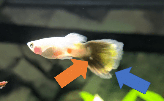 I have a relatively new guppy here, has been in the tank about a week. If I had to guess I'd say he's probably about three months old.