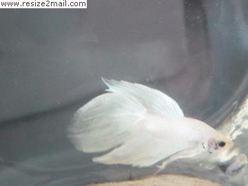Very, very nice looking white (Opaque) betta. His white if very pure. Beautiful. He would be a good betta to breed with a nice White/Opaque female betta.