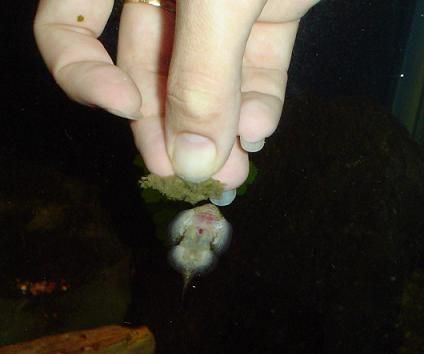 On a whim I held some Formula 2 in front of one of my wild caught hillstream loaches and... he took it It was so exciting, I had to grab the cam He kept grabbing and ripping pieces off, he bumped my big pokey nail a few times