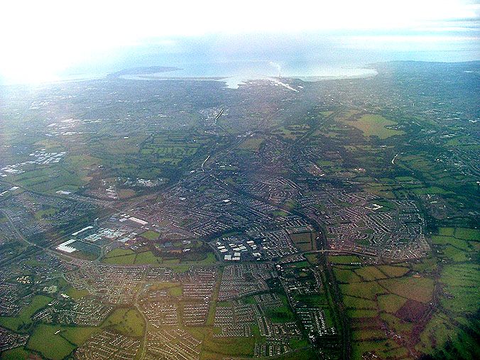 Got some blurry pics of Dublin stretching out into the Irish sea, this is facing south east, the city centre is in the top left just in from the harbour: