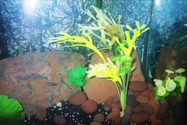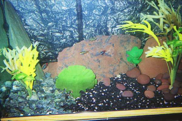 actually its a florist paper. And the background shows up that way because of having to use a flash with a cheap disposable camera. The pictures truly look nothing like the tank. The flash washed everything out and let everything else reflect back so badly all the colors are distorted.