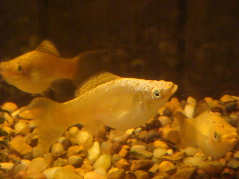 One of it shows one fish with black dots on him, and the other one has this green fungus** on her. Again they are very active, but I do see them gasping at the top couple times.