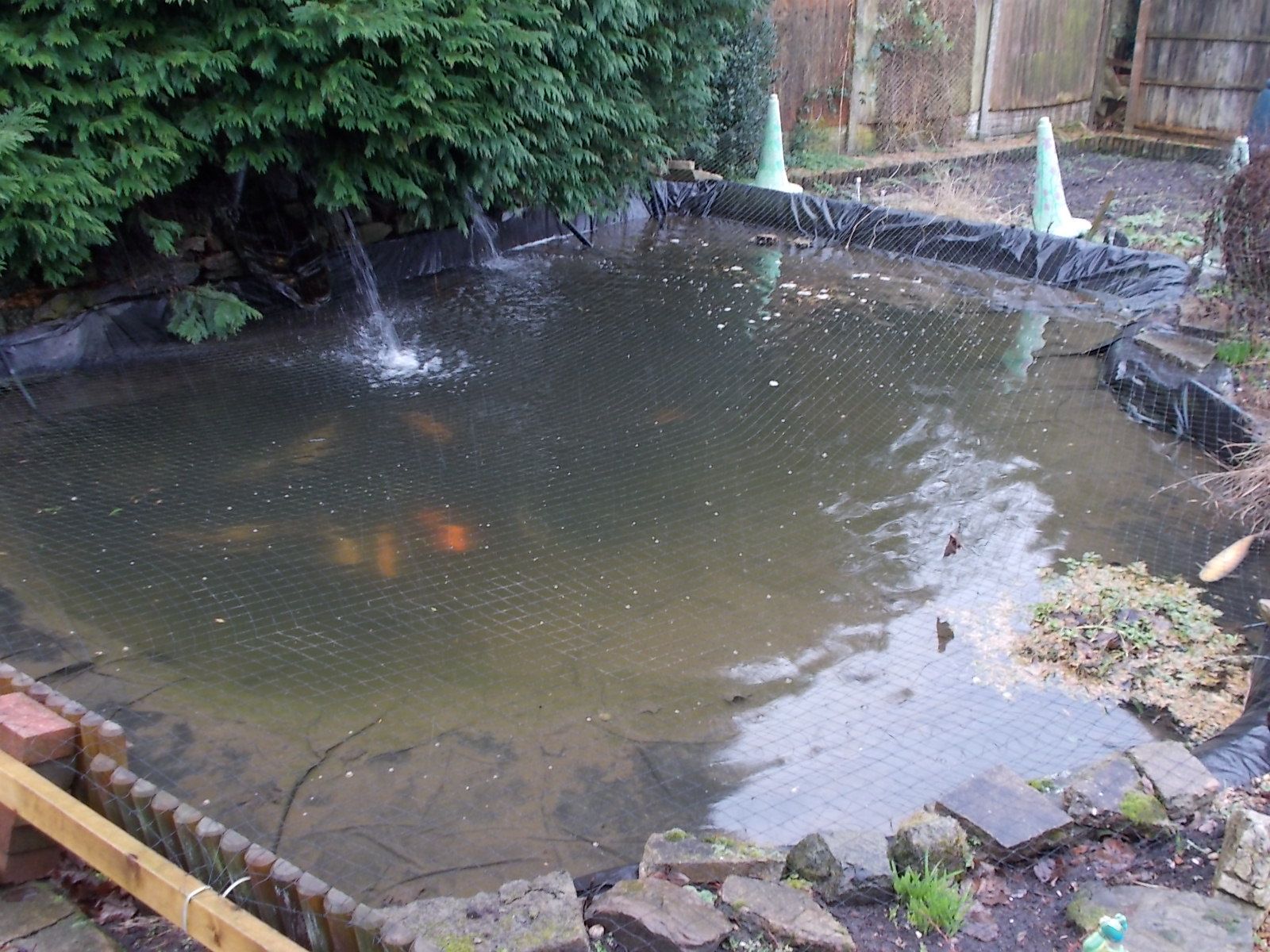 I'm Tom and from Cannock in the Midlands and I've got a large, outdoor pond. To cut a long story fairly short, the house had a pond when I bought it, but the garden was so overgrown I didn't realise until I moved in and cleared the garden! It's size is hard to estimate but at its longest it's about 7metres, widest about 5 metres, with a shallow ledge and then it's about 1.5 metres deep at it's deepest. I'm guessing it's about 40,000 litres.