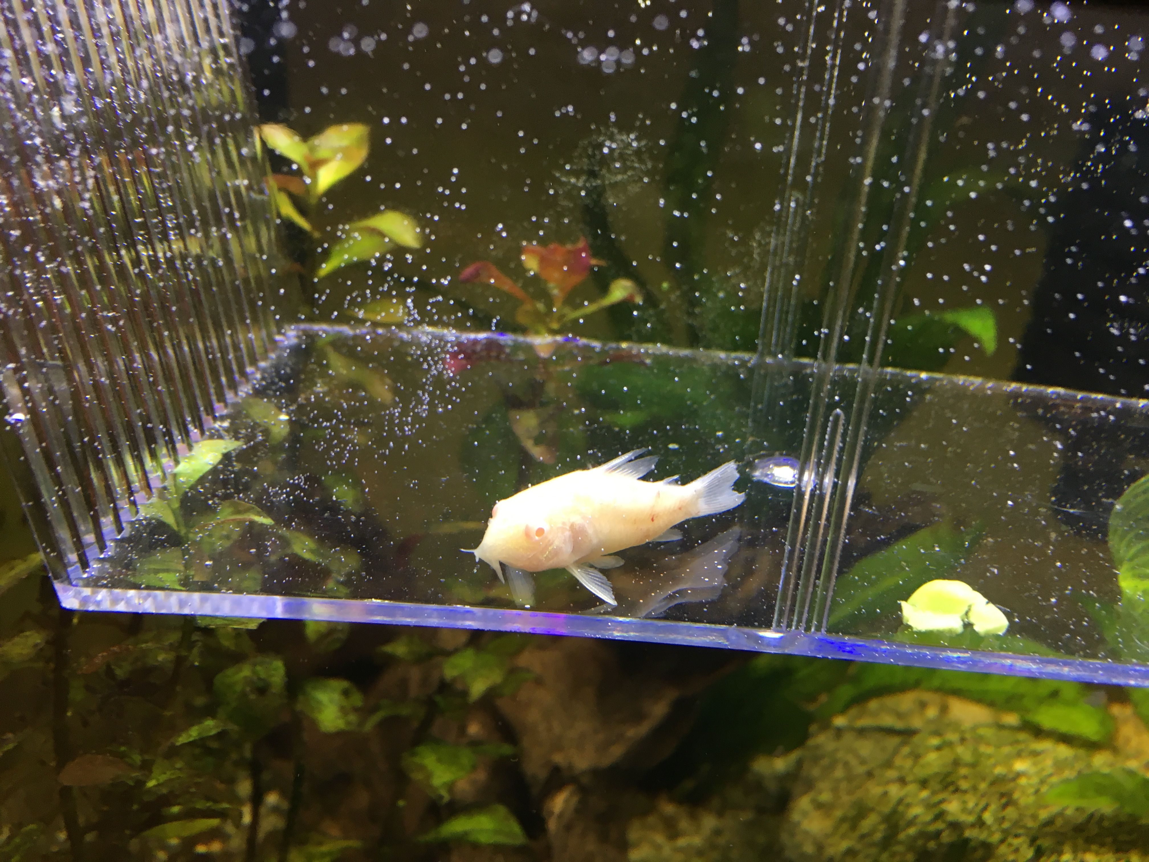 I've had 6 corys for a long time in a 20 gal long and suddenly one of them started swimming upside down and close to the surface. When he wasn't, he would either just sit in one spot or swim around the middle/top areas of the tank. This isn't normal for him. He also has some torn fins and some weird red spots in the middle of his body almost looking like blood. The other 5 have stopped being as active as they were before. The changes I made to the tank recently are adding a sponge filter and I switched from fluorescent light to an LED light. Additionally I have two filters on the tank, namely a 20 gallon canister filter and a standard 5-15 gallon hang on the back filter.