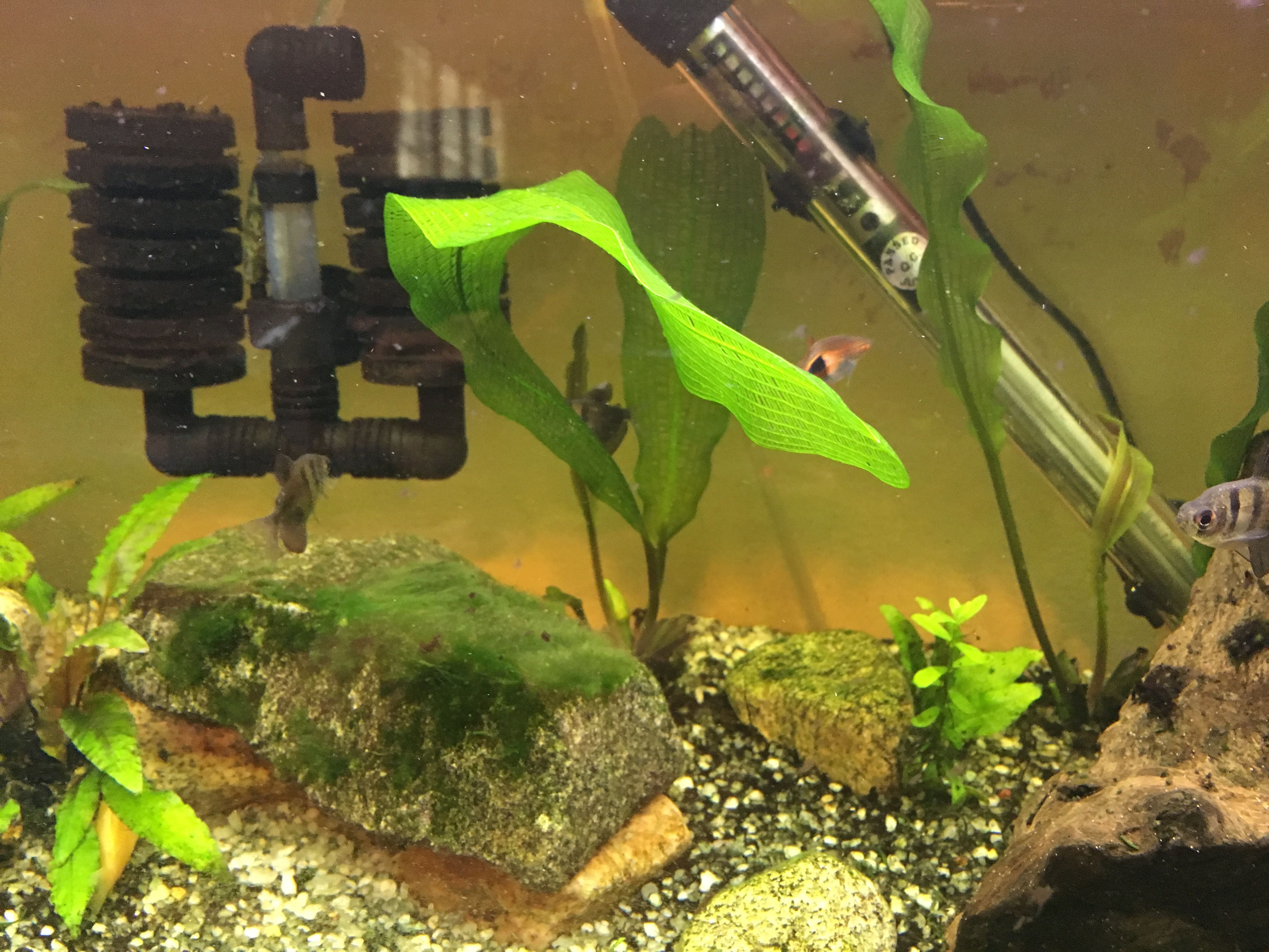 I was thinking maybe the sponge filter created so much CO2 in the tank and made him bloated? I read other places and they said the fish could be getting bloated and to feed a pea to it. I did so and he ignored the pea and just hung out in the bottom of the tank. I just put him into a nursery tank in the same tank with a pea and I'm hoping he will eat it and/or get better. Did I do the right thing? Please help.