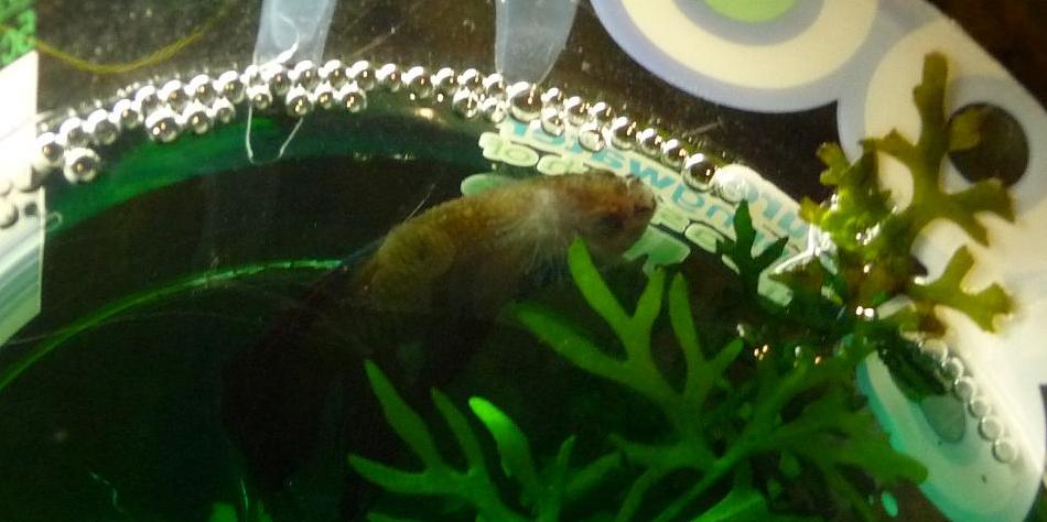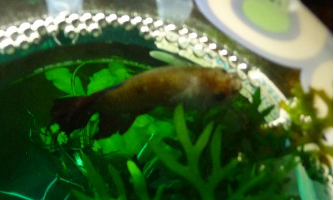 Thanks for viewing, please help me anyone. I have a 10 month old fighterfish, have had him for about 6-7 months. He is in an 86 litre, not sure in gallons, like 28 or something i think. Water parameters are all fine and stable, and all of a sudden when i got home from a 4 day holiday, hes lying on the bottom of the tank dead. I reach down with my net to get him out and woosh, he swims off. He has been doing this non stop for about a week. Then i spotted, just above his gill, on his head, he has a white patch, the size of a pin head, which is white, and flat but then it has like spike looking things coming out, and it looks kinda cottony. He has also lost both anal fins, and its all fluffy and stuff down there. I have seperated him into a little cut open coke bottle with tonic (a general fish disease medicine) and salt, and i put a little plant in there to aerate it. Is he going to die, do i have to put him out of his misery, i REALLLLLLY dont want to do that. But it saddens me every time i come home to see him just lying there so sick. WHAT DO I DOOOOOOOOOOOOOOOOOOOOOOOOOOOOOO!?!?!?!?!