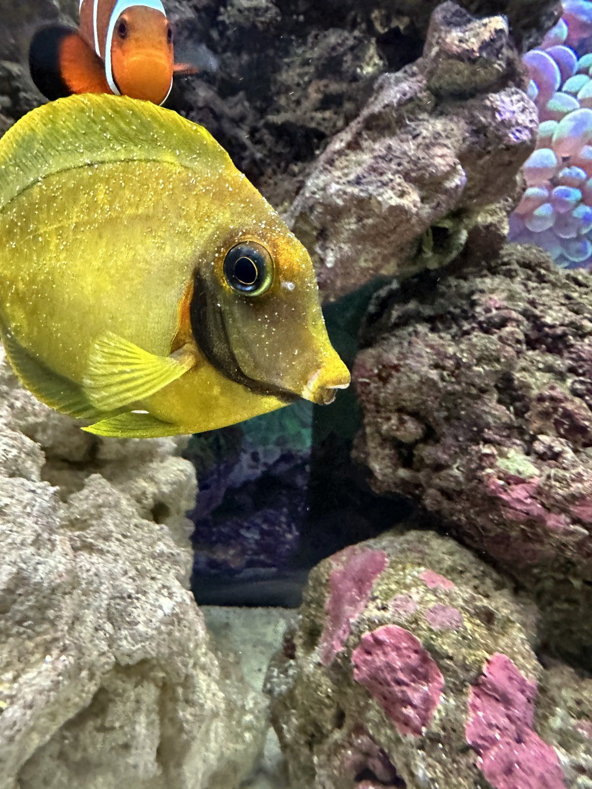 I have had my tank for about 9 or so months. Recently added a yellow mimic tang. Today i just noticed this. Is this ich? What do I do?! This is my first time dealing with this. None of my other fish have those spots. I went to a local pet store and a marine employee said he has seen tangs have “fake” ich spots and not to jump the gun with treatment. He suggested waiting until the morning to see if it’s gone.
