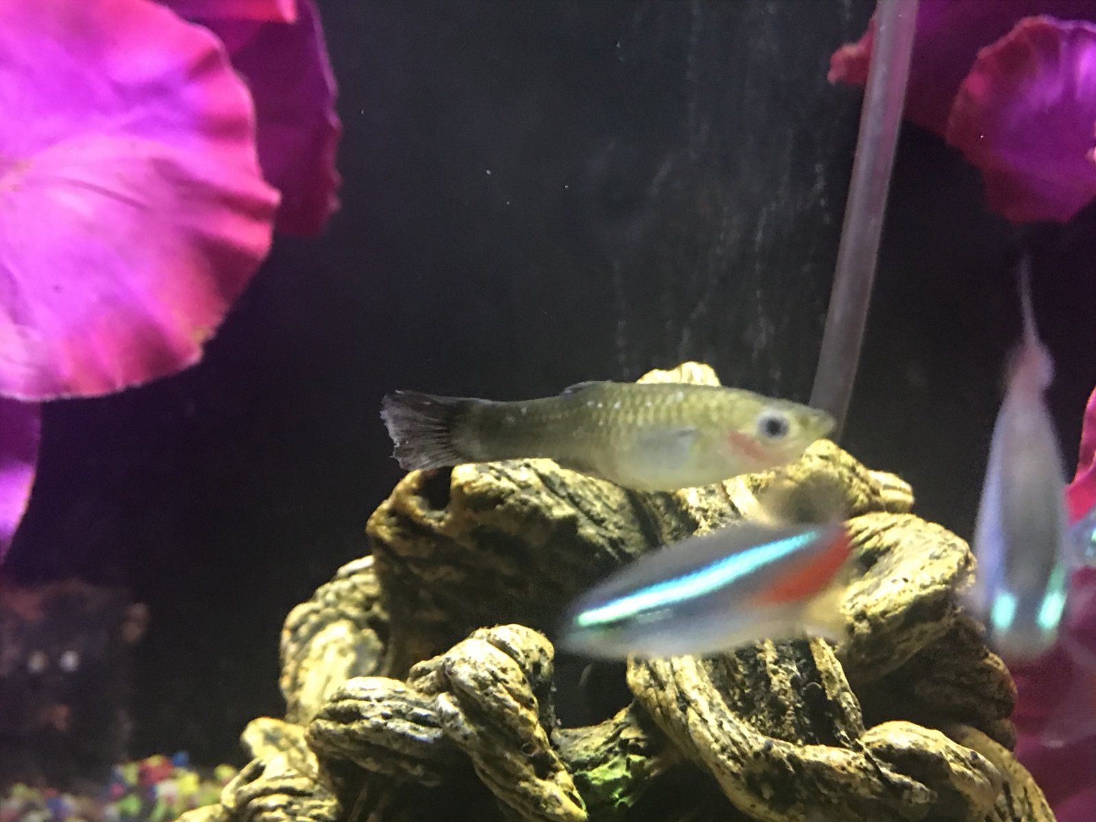 In our tank we have gouramis, tetras, clown loaches and some other community fish. As far as I’m aware none of these are live bearing fish. However, about a year ago we brought new plants from the fish shop down the road and a few weeks later we had 2 little fish swimming at the top of the tank. The big fish were trying to eat them so we moved them into my neon tetra tank. We lost one about 6 weeks ago so we only have one left, I named him Jerry. Only problem is that even after a year we still have no clue what it is. The pictures aren’t great but it’s got a beige plain body and the tail sometimes has an almost shimmery black kinda colour. Does anyone know what type of fish it could be?? Or anything I can do to help it have the colours of what it’s meant to be ?? Any advice will be great. ?