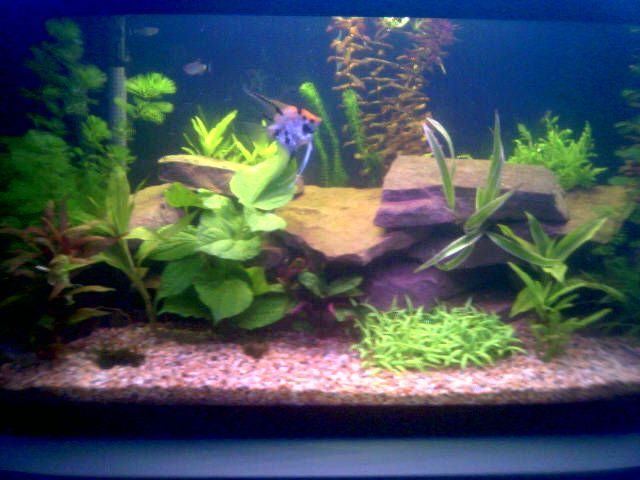 nice especially those rocks I would second the suggestion of tall background plants though especialy if you have some small fish that will dart in and out of them. and maybe a short plant in the front left corner.