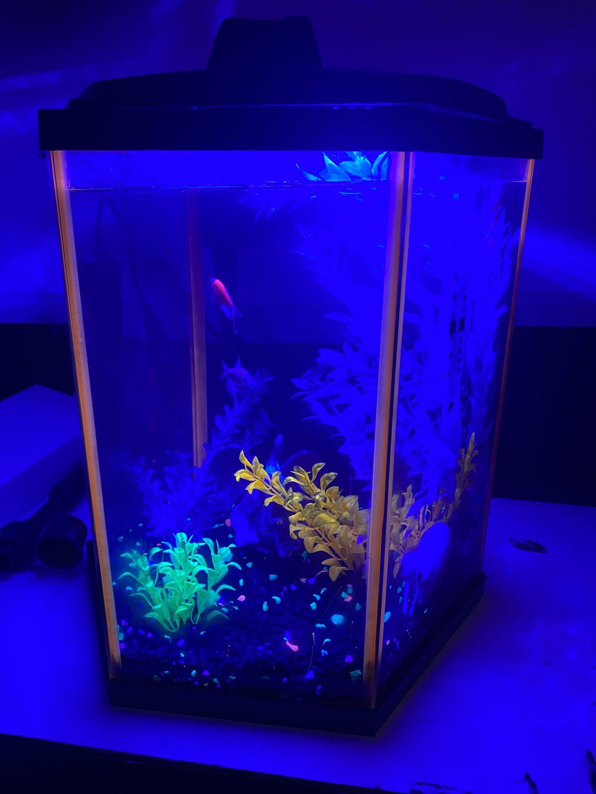 On March 26th I bought a Aqueon Neoglow Aquarium Kit Hexagon. It is an 8 gal. tank, I realized afterwards that the fish have to be in a tank of 10 gal. or more. My mom told me that we had to let the filter run for 72 hours before putting the fish in, we ended up asking the manager at the pet store if we were able to put the fish in right after we set up the tank and we said it would be okay.