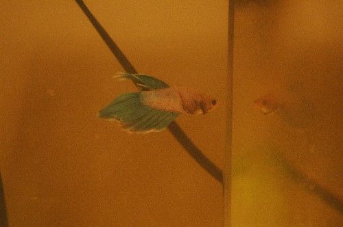 He's a half moon fringe tail (yeah I know it's really hard to see, he didn't want to pose for me