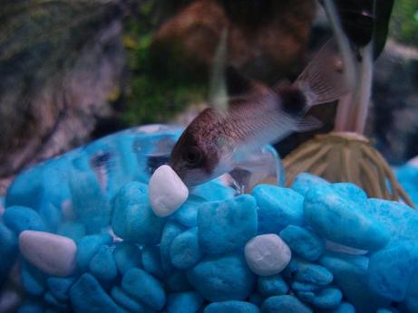About a week ago, I noticed that the swordtail had a big belly and was a little skittish (zooming around the tank occasionally - no rubbing yet). I figured she was pregnant, as I had a male in the tank at the time. About 5 days ago, the belly seemed smaller all of a sudden. 2 days ago, I noticed her rubbing on objects in the tank, and 'flashing'. Visually, she looks no different. Haven't noticed any issues with the corys, other that one seems to be breathing quickly, and possible has pinker gills that usual.