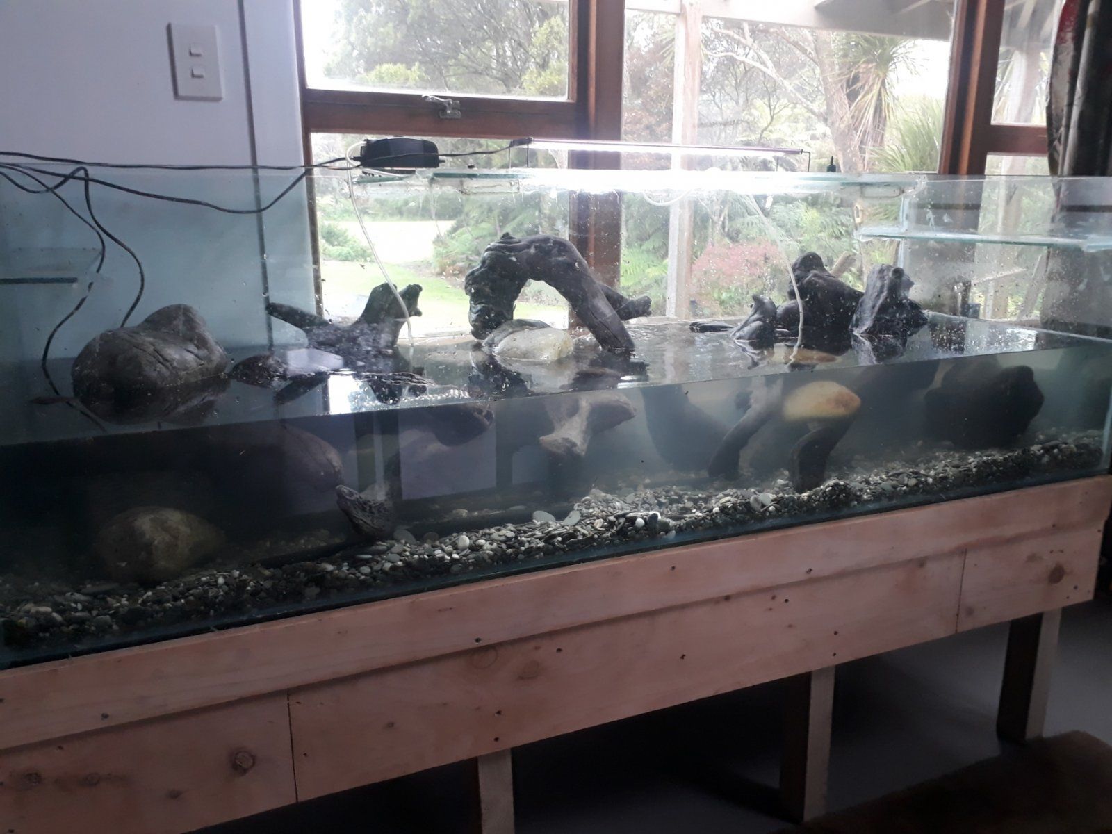 WowThe more water you have the more things move around, at this level the main pieces are submerged, and the tank is stable. I know this wood is safe. It is NZ native hard wood that has been in the ocean for years, we also have zero pollution on the west coast so nothing can contaminate it.