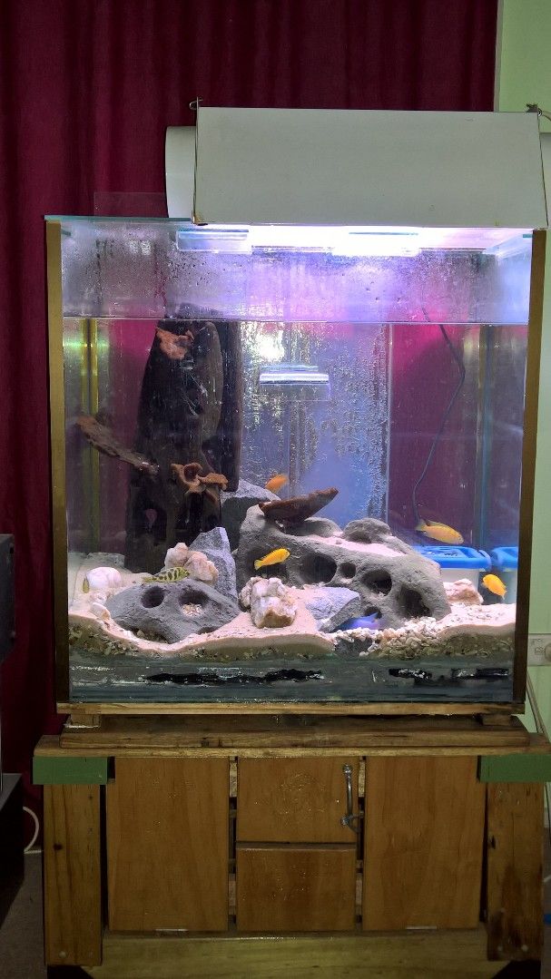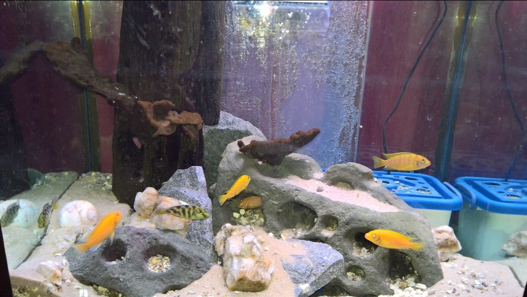 I have had these fish for 12 months now they are African chiclids. I have built a stump with an intense cave system in the first 1/2 foot of the tank , I imagine I could have at least 30 mbunas living in the system that only come out when I tap for food, in the morning or when I turn on the lights which, incredible spacious. I haven't put in any plants yet I have room for improvements and am open to suggestions.
