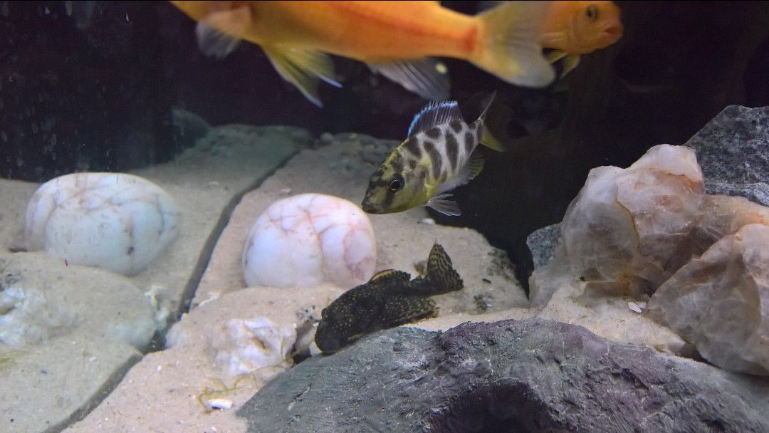 I added the alpha blue zebra and new fish, altogether today and the former ,they have calmed again all is good the giraffes have found a spot in the sand the alpha zebra owns the under world ,at least till he finishes building his nest.