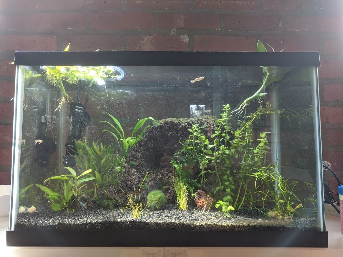 It actually looks good right now!so i took a pic of one of my tanks as two people asked for pics (the other is not close to done), but i am still fiddling around with the layout and waiting for my background plants (guppy grass) to grow in! if you have any tips or ideas for how i can make this tank look better is it super appreciated