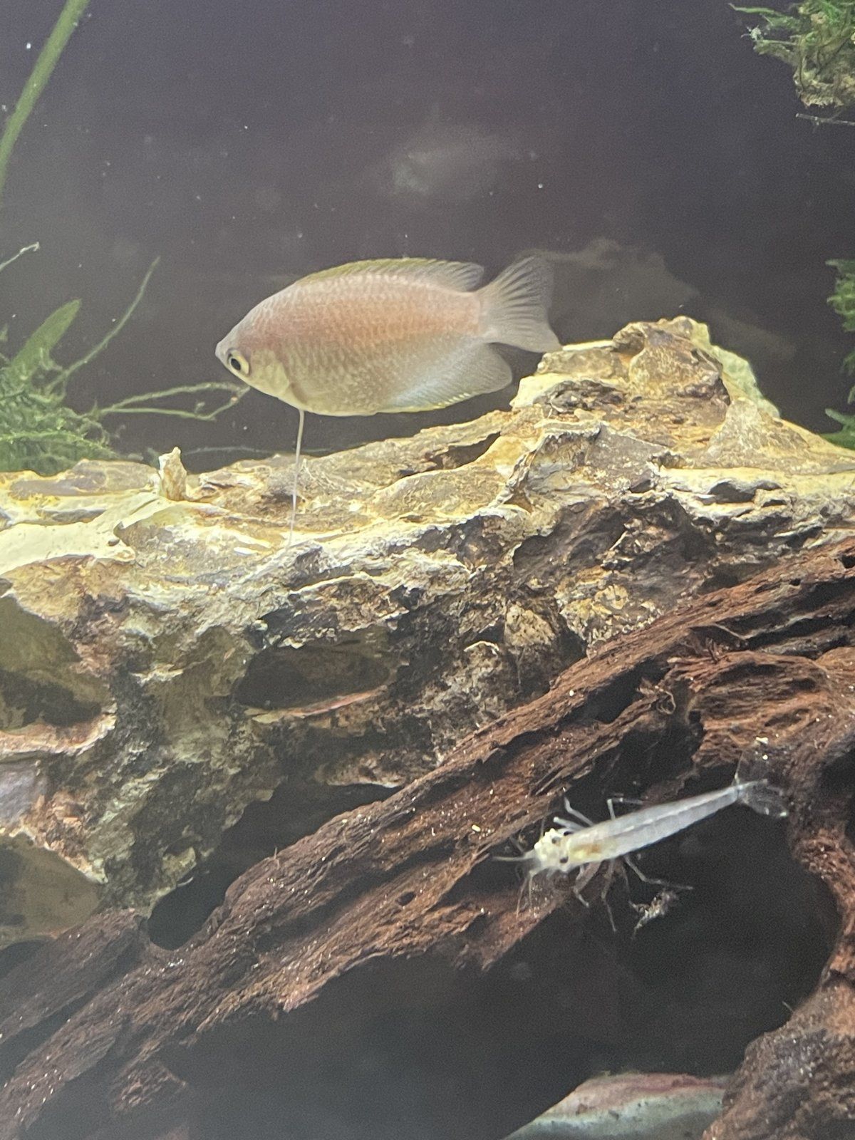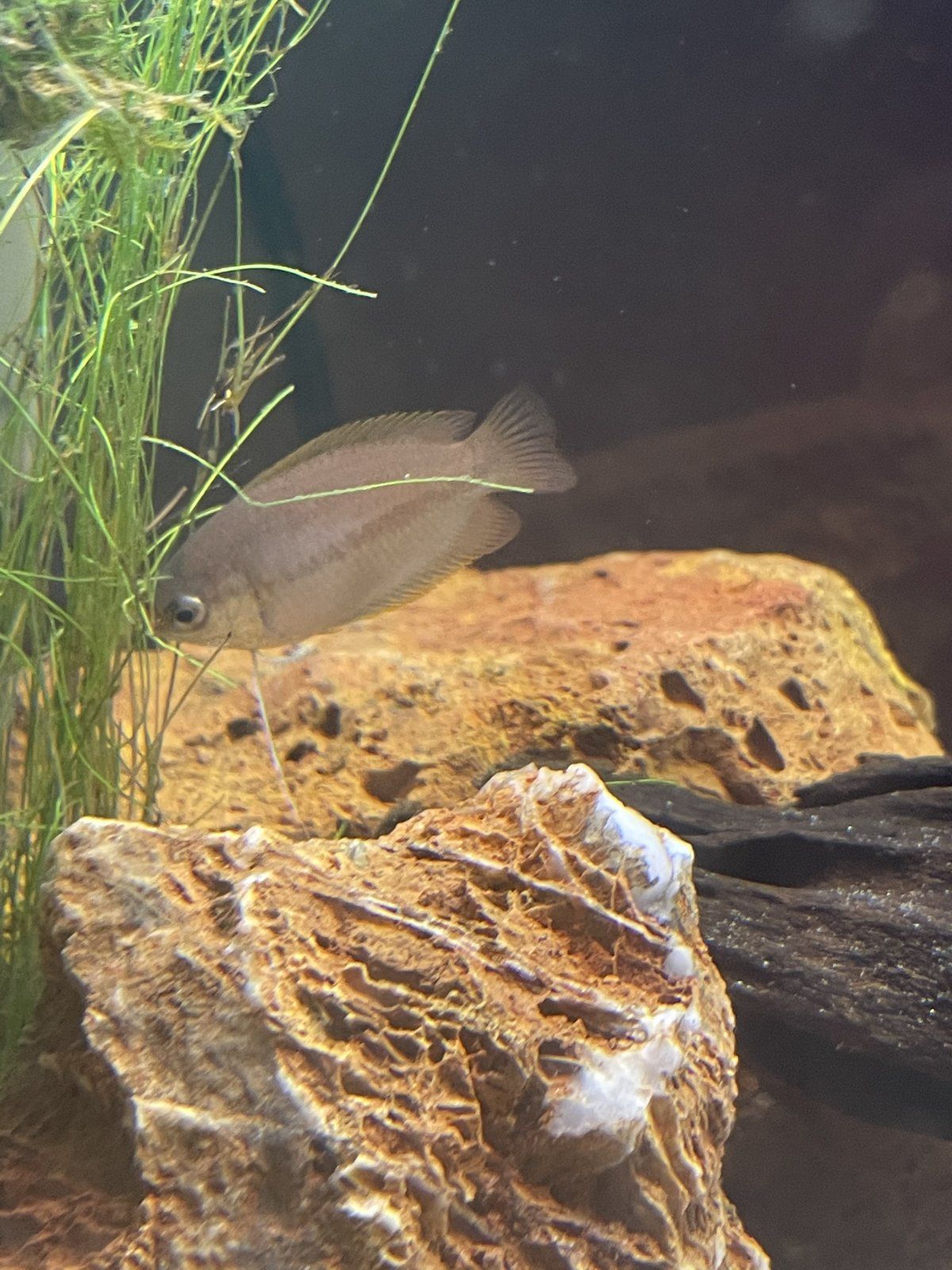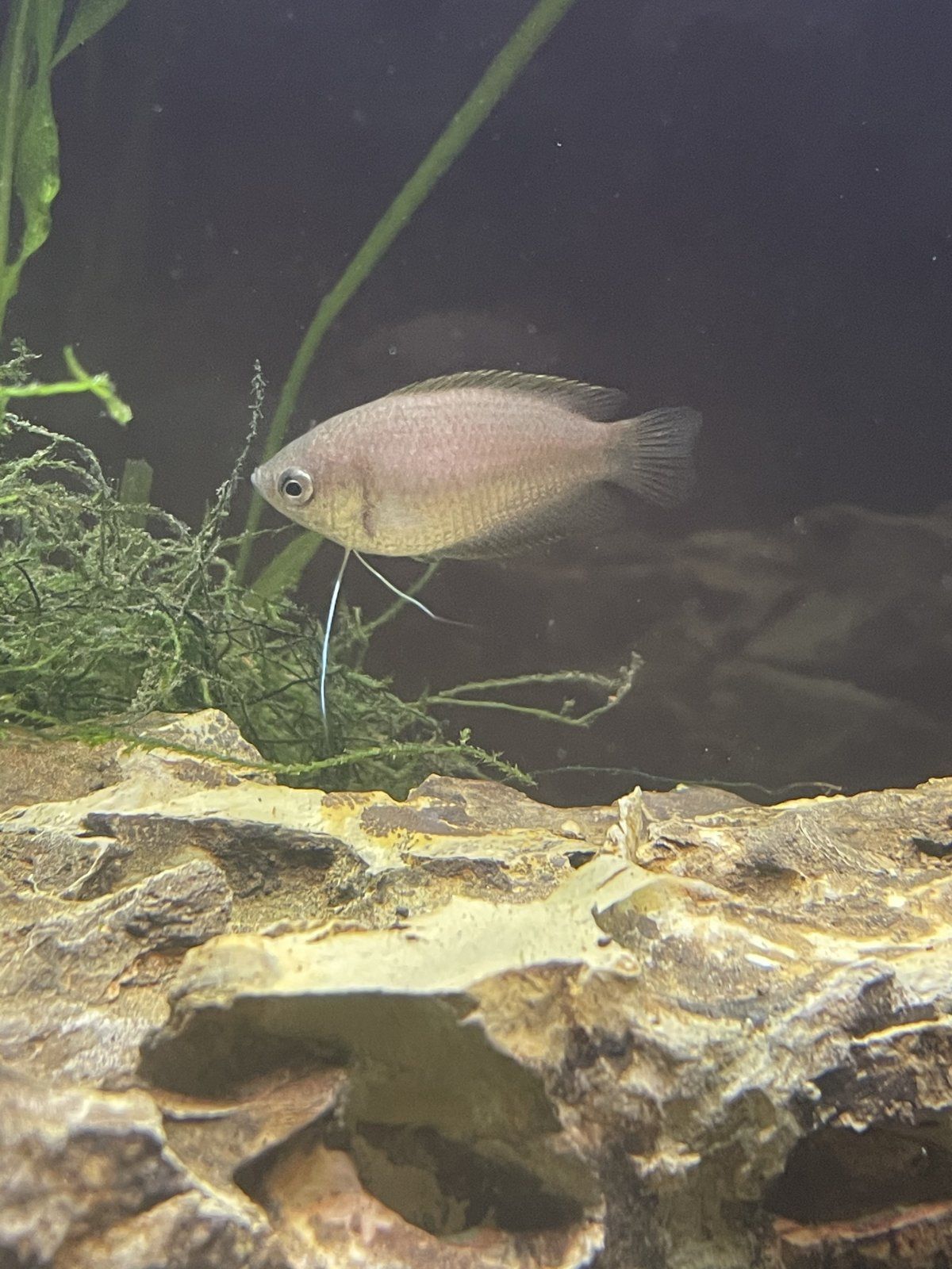 Hi everyone, this is my first time posting so bear with me. I was reading other posts about people with similar issues but I am still unsure of what kind of Gourami I have. I picked up my Gourami for my lfs last week, they said they only had one male and were waiting on getting more. When I bought the male, they said that he should become more yellow in color once he’s comfortable in my tank. It’s been a week now, and the only color change I noticed was a black stripe on his side. Is this a young male that will lose its stripe and turn yellow? Or is it a female and my fish store doesn’t know how to sex their Gourami? I appreciate any help!