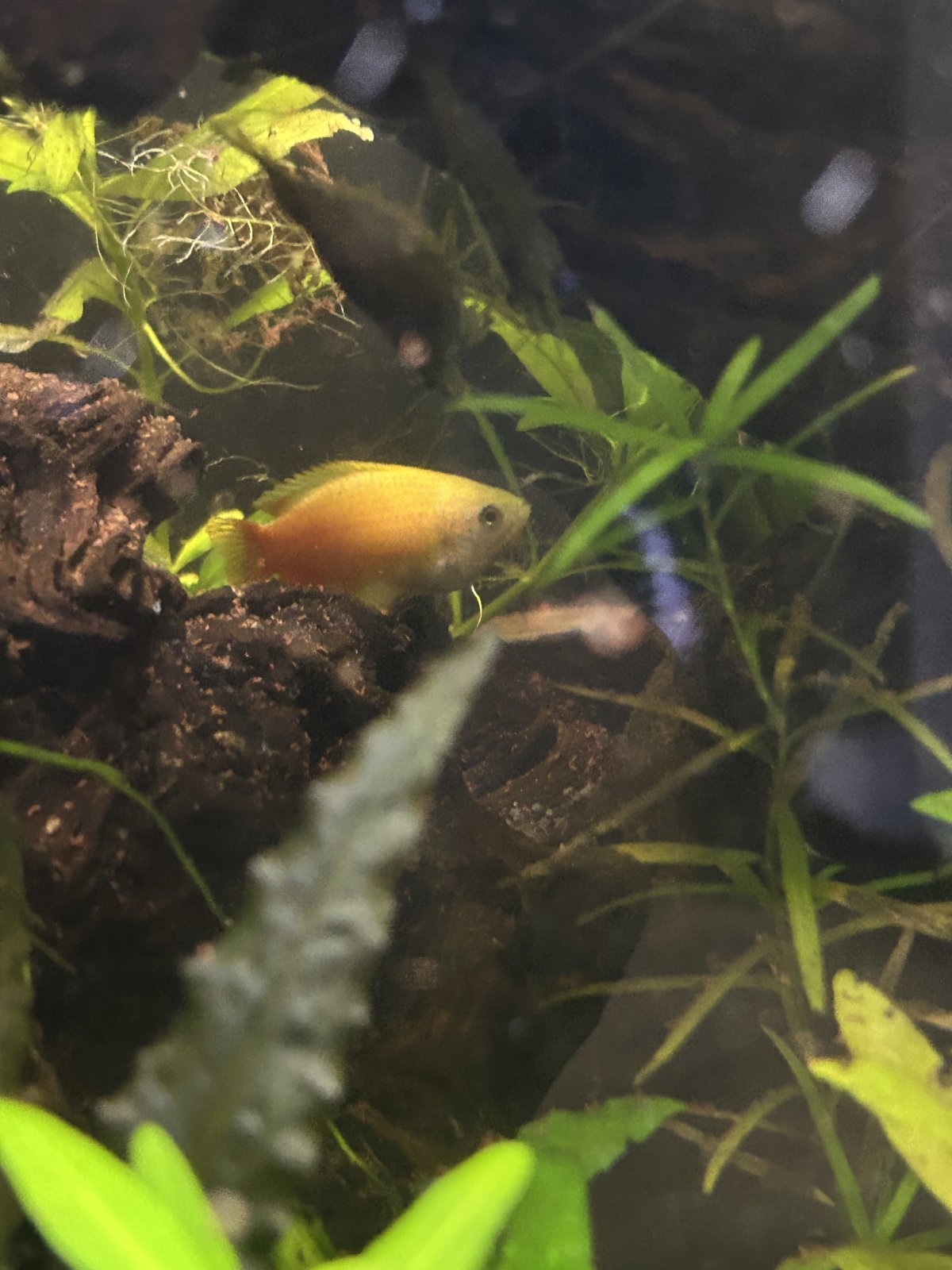 The images of the yellow, man-made variety aren't clear enough to be totally certain but I suspect a male as it does not have any trace of a broken darker line form nose to tail. Females of this colour variety usually, though not always, have this stripe. The third photo appears to show a darkening of the throat but this could be a shadow caused by tank decor. You can see the fish in the flesh - is there any trace of a slightly darker throat? And is the yellow colour the same shade all over the body or does it become orangey towards the tail?