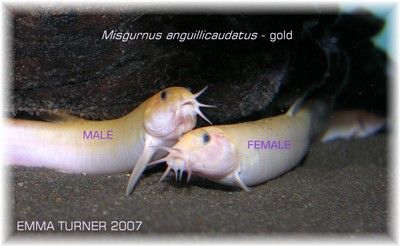 As for the sexing, a male's pectoral fins are longer and thicker, giving the fins a triangular shape. Females have rounder pectoral fins. Males often appear to be standing up on their pectoral fins while resting on the bottom of the tank . I would say the one with the bloodworms in the picture is a female and the other a male.