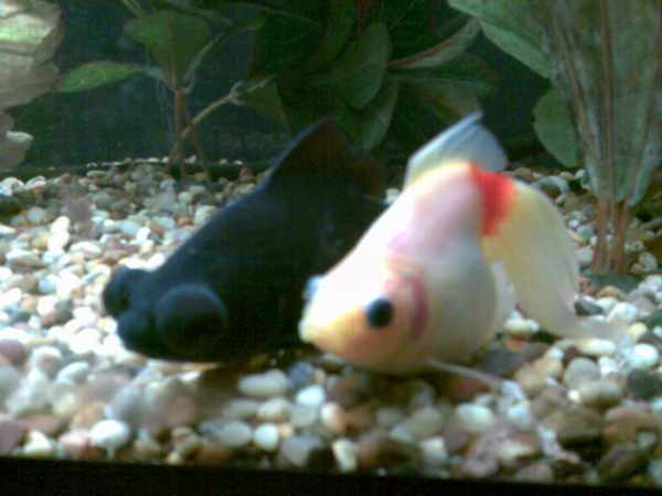 Very cute, but very weird for me as it's like looking into the past, I have a black moor and a calico telescope that looks similar to yours(apart from the eyes obv.) and their original tank had the same gravel and everything, as soon as I saw it I was like 'oooh that looks like kuuga & ryuki, creepy' ryuki even has the orange bit at the base of his tail.