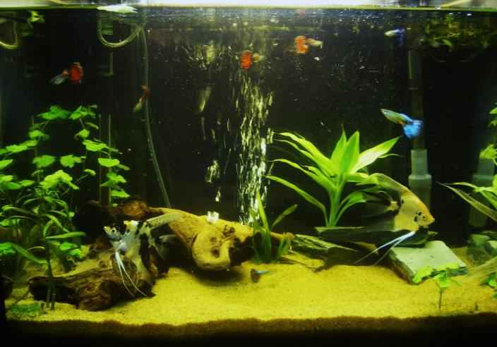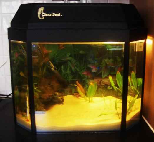 I only have 6 tanks up and running, that is no addiction I said .. there are loads of people out there worse than me... So Prove me right , this is normal, to have a tank in everyroom !! Apart from the bathroom ... "hmm now there is an idea"