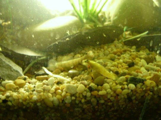 One of the Gobies looks like he changes colour from a cream to a dark grey, and then proceeds to chase another Goby round the tank (the same one all the time)... He then turns back to his normal colour and goes on about his business..