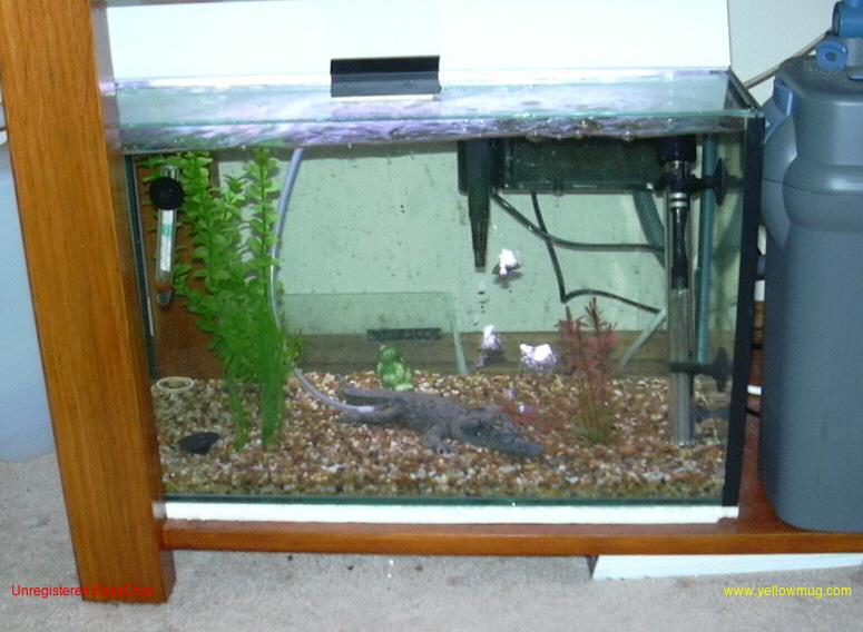 It is my 10gal tank which is pretty bare as I use it for quar purposes as wqell as sick fish. There is a platy in the moment but she is hiding from the cat (who is to the left of the shot)...she will be relocaqted back to her normal home this weekend sometime