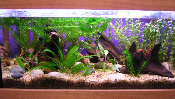 I have just set up a sand tank, and I want to try my hand at some live plants. However, I've run short of ideas for types of plants, and I'm just no good at arranging plants to look natural, so if you have a tank your proud of, please post it here!