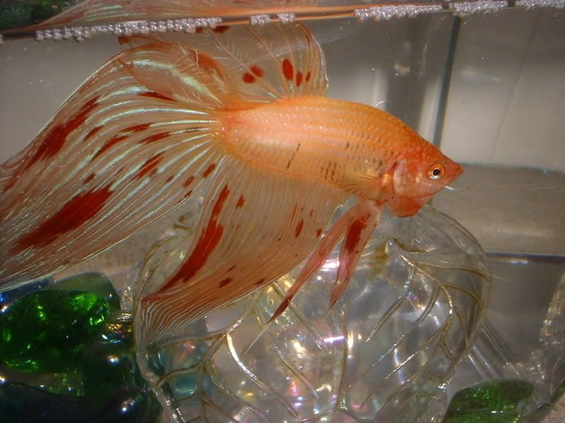 I just got a yellow vt..and they had the most beautiful vt apricot fins with splodges in but red and blue body..these fins on a red and blue body he was fab (jobys bettas has some pks)