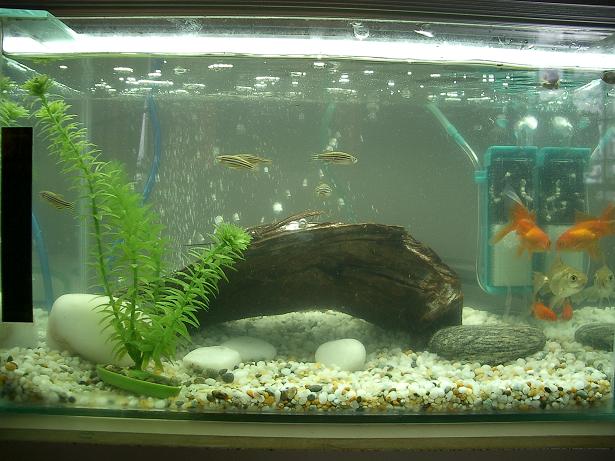 Hi, new to this whole fish-keeping thing... bought 5 zebra danios on the weekend and one of them appears to have gotten very fat underneath at the front.. is it likely that this one is pregnant (None of the others are fat like this). If she/(he??) is what do i need to do in order to get her to lay the eggs and then for them to hatch? Any advice would be greatly appreciated. Here's a pic of my tank: is there something suitable on there for her to lay on? Or do i need to put her in a separate tank or something. Thanks guys in advance!!
