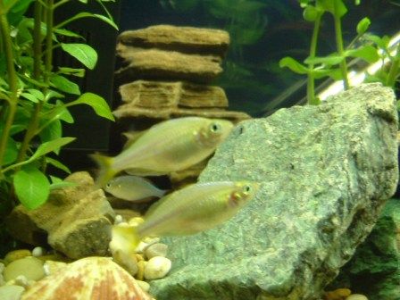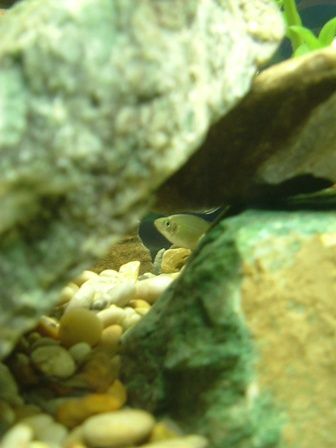 After taking a whopping 13 days to do my fishless cycle I have now got 3 little juvy blue rainbows called Red (male) Treacle and Honey (Females). Check out the pics.