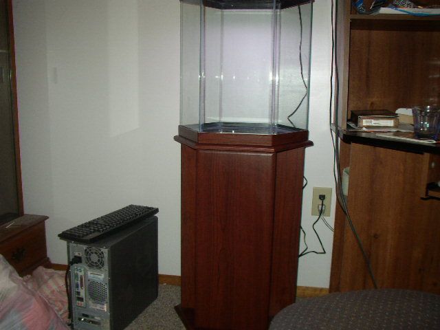 I went to PetCo today to get some sand for my 55g salt tank. My mom noticed that there was a tank in the front. I looked at it for a moment and it was a 20g Cherry Wood trimed hex with a cherry wood stand. It was marked down at $151.99 from 229.99. Also next to it there was a small hand written sign that said 50% off all marked down items here! I asked a lady next to the adoption place, there were grey hounds today, and she said it was 50% off! All together I payed $75.74 for the tank. I'll post pictures once i get it all dusted and put together.