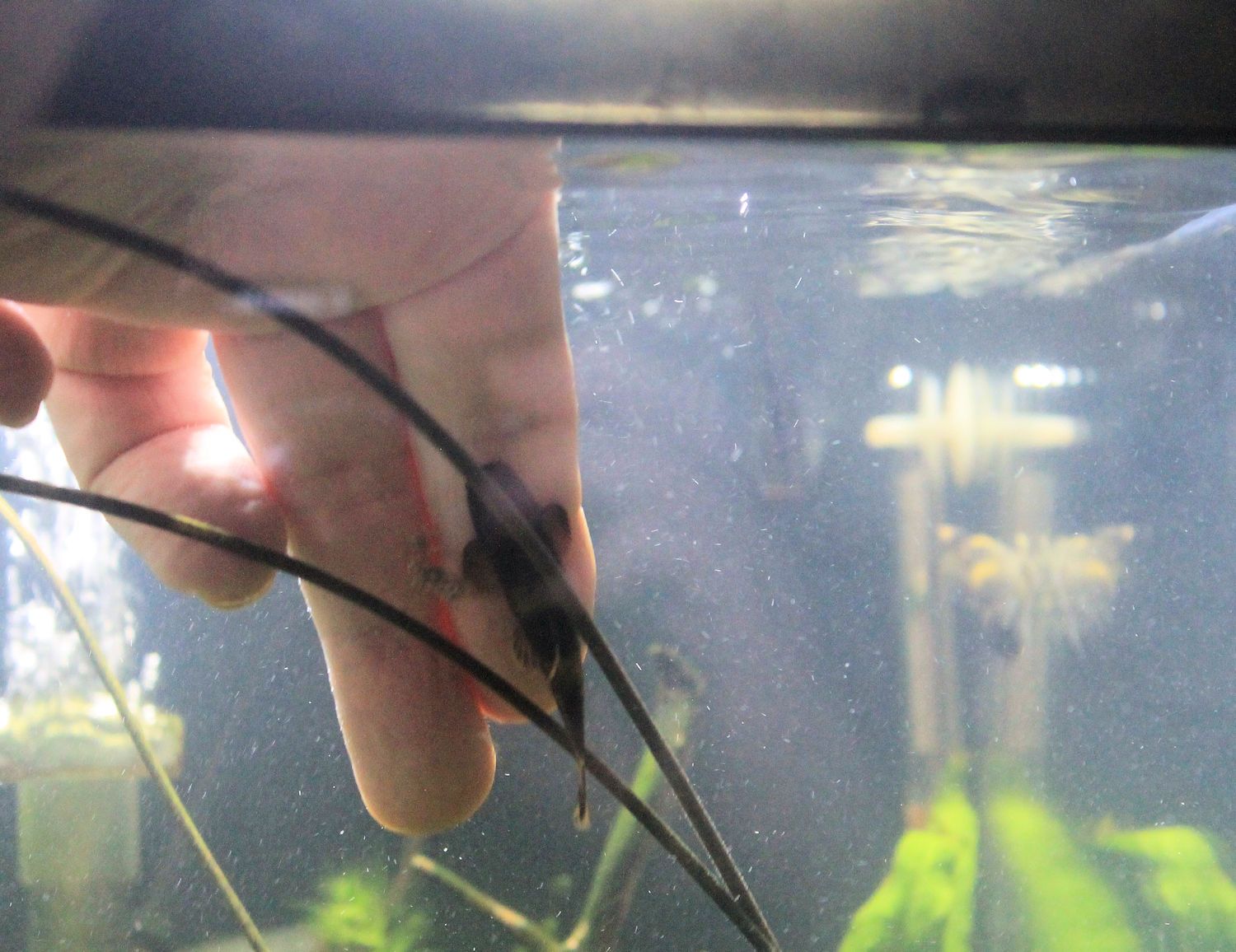 I DO like how Pandas keep algae under control! What amazes me a bit is that they will strip algae off a plant leaf without hurting the plant. I don't clean the least visible side of my tank just to allow algae and bio film to form for the beasties. I also like how 'human friendly' they are. I couldn't put my hand in the tank without at least one clamping on my hand (see image below).