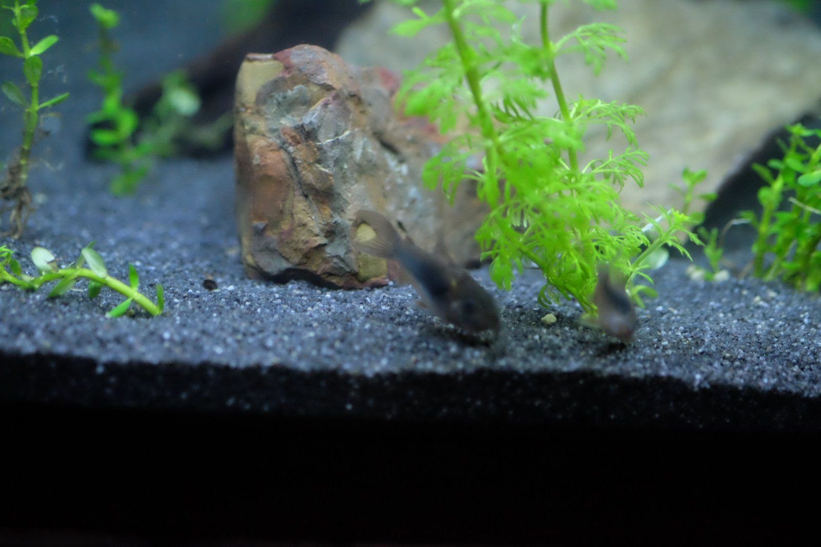 Also since you live in the UK and they're pretty common there, could you please post some pics of the tank?Speaking of the baby cories though, I could only see three of them earlier. I dropped a bit of an algae wafer in just to lure the fourth one out, and the three were chasing the wafer around the tank, but no fourth appeared. I'm looking at both open sides, open the lid which is the whole top of the tank - can't see it. One of the smallest ones is missing, I can't even see it hiding under the almond leaf.