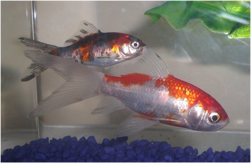 I have attached a picture of the proud parents (before and after, you can see the scale and fin damage on the commet). I have no clue whos who... Just found the eggs on a plant when I was cleaning. Nothing fancy, sarasa commet and a shubunkin... met the splishies LOL