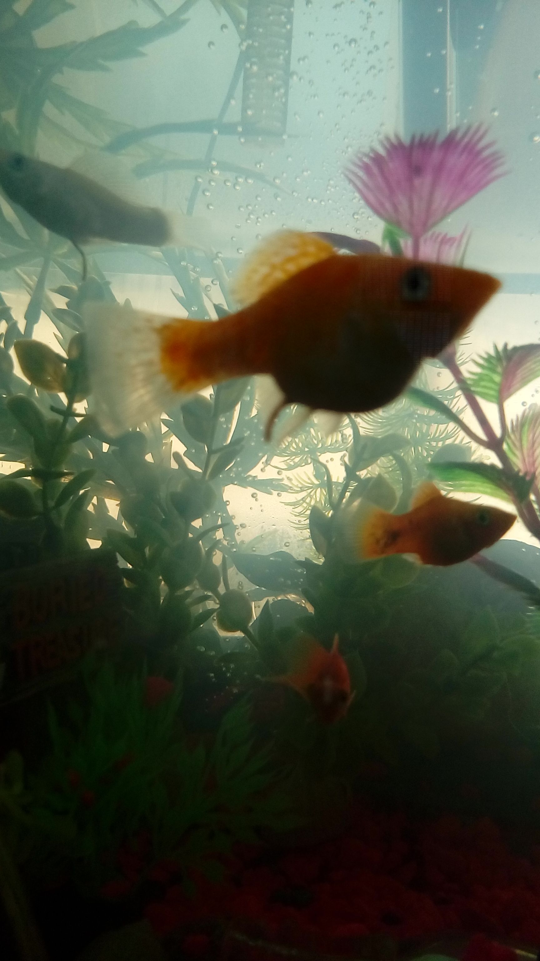 I'm kind of new to raising mollies I've had them for about 2 months I moved them from a 5-gallon smaller tank because it's already cycled and I thought she was going to have babies and I would put the babies in the smaller tank until they got big enough. I put them in a 25 gallon tank where there's another female and a couple of male mollies they have a few other tetras and couple sword tails etc..as tank mates I thought she was pregnant because she's so big. is it possible that she's just not having babies because she's too stressed out? In these pics the first is when I first got her and then now.